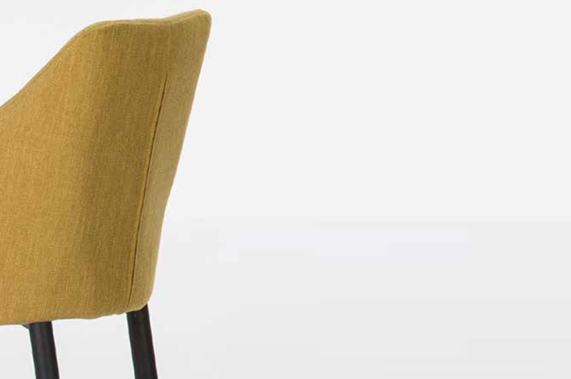 Fauteuil revêtement tissus, existe en coloris gris, noir et jaune.