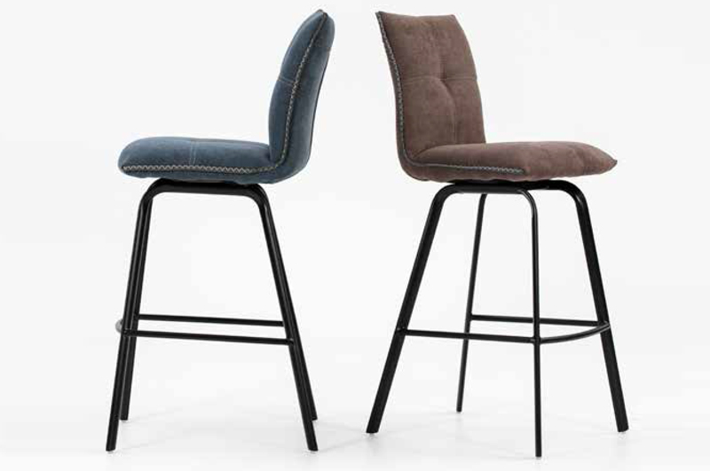 Tabouret design revêtement tissus et pieds acier noir.