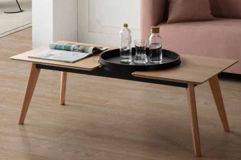 Existe avec plateau wengé/pieds noirs ou plateau bois clair et pieds bois clair.